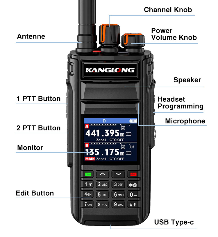 Das KANGLONG UV-98 ist ein 10-Watt-Hochleistungs-Multiband-Amateurfunkgerät mit hervorragender Reichweite, IP68-Schutzart und optionalem GPS für die Positionsmeldung in Echtzeit in abgelegenen Gebieten.