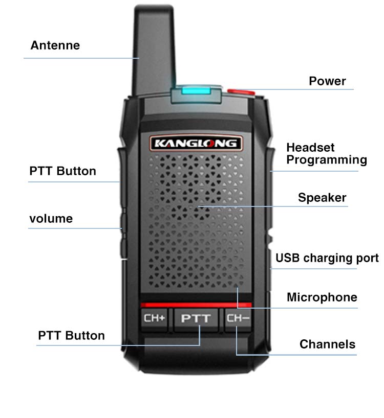 Das KANGLONG T-230 ist ein leistungsstarkes, lizenzfreies 2-Watt-Analogfunkgerät mit einem federleichten Gewicht von 95 g und universeller USB-Ladefunktion für nahtlose Geschäftskonnektivität.