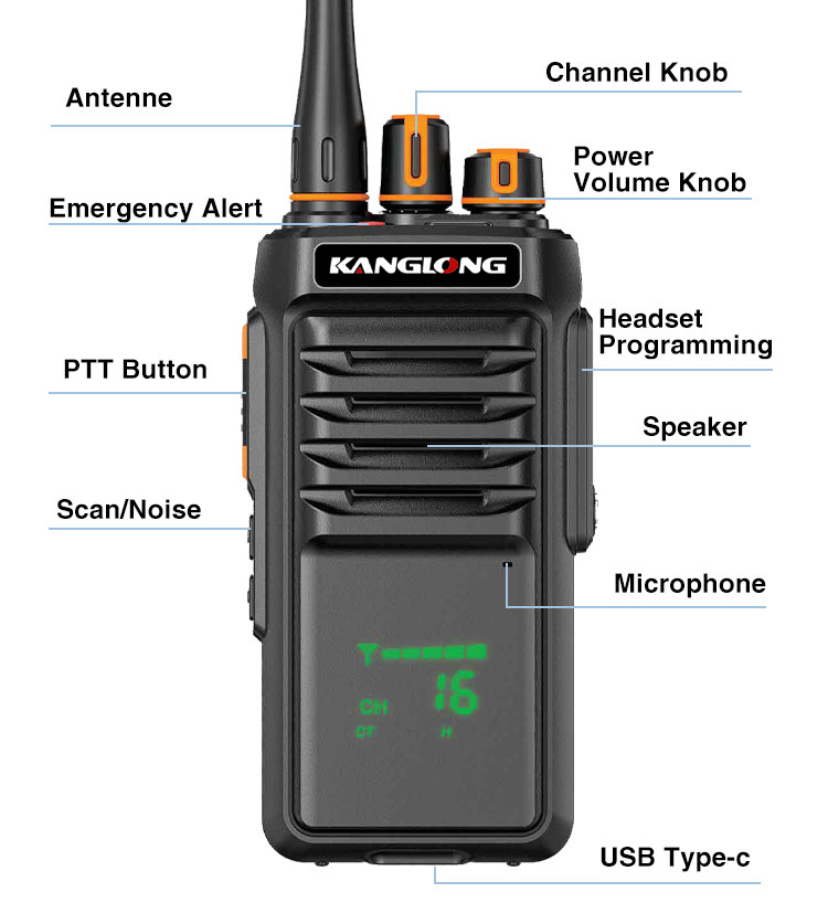 Das KANGLONG P500 ist ein leistungsstarkes 5-Watt-Analogfunkgerät mit Schutzart IP68 (Staub- und Wasserschutz). Es wurde für raue Umgebungen entwickelt und gewährleistet zuverlässige Kommunikation in den Bereichen Sicherheit, Bauwesen und Schifffahrt.